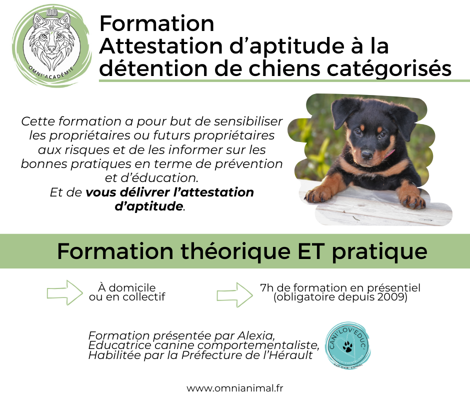*Formation Attestation d’aptitude à la détention de chiens catégorisés :