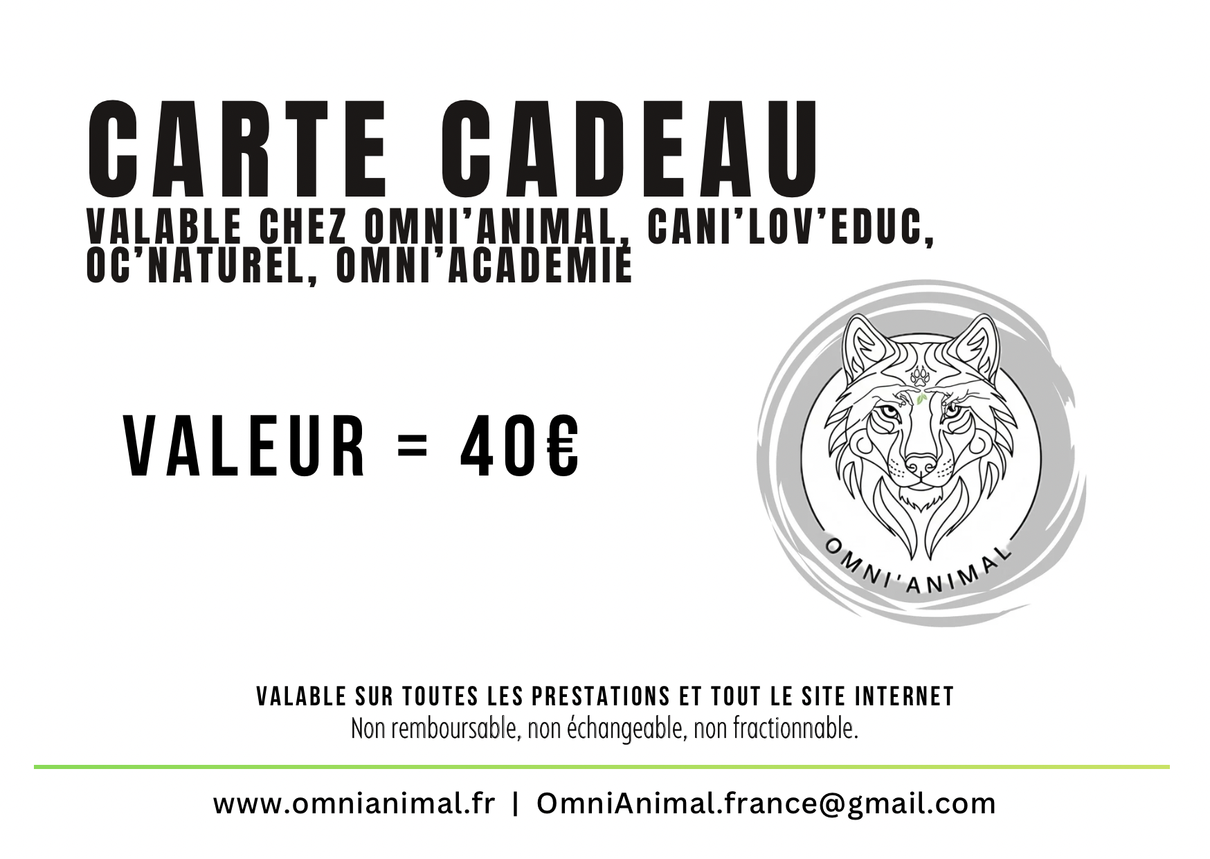 Carte cadeau valable sur l’intégralité de mes prestations et mon site internet www.omnianimal.fr